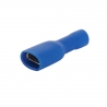 100 x Female Insulated Crimp Connector / Fully Insulated / 6.35mm (6.3mm) x 0.8mm / 1.50 to 2.50mm2 Wire Range / 10A 250Vac / Solid Brass Connector / Tin Plated / Blue Colour PVC Insulator / Compliant with BS4579 and BS6178 / Tin Plating to BS1872 / Operating Temperature Rating -20°C to +80°C / RoHS Compliant / FDFD2-250.