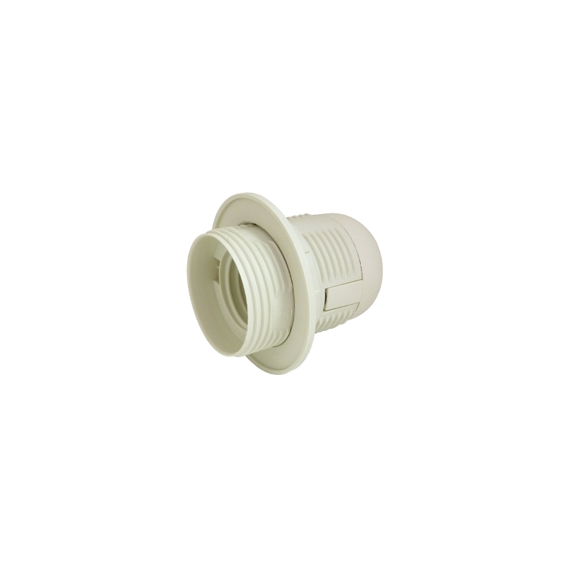 High quality PET E27 lamp holder, moulded in white. This is also known as an Edison Screw or ES lampholder.