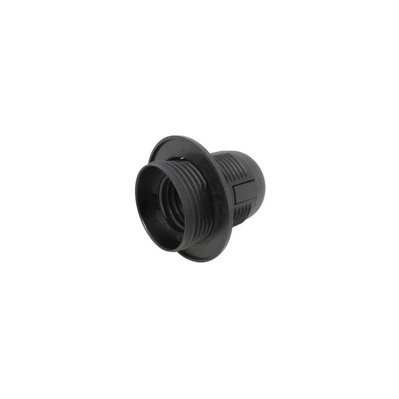 High quality PET E27 lamp holder, moulded in black. This is also known as an Edison Screw or ES lampholder.