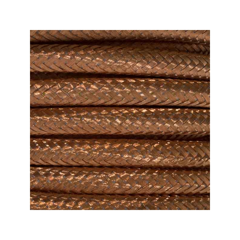 Plain Copper Fabric Cable (H03VV-F 0.75mm), made from Rayon to create a silk like appearance and feel. Sheathed braided fabric flex for lighting applications ... pendants, table and floor lamps, wall and ceiling light fittings. Approved and fully compliant with European and British safety regulations including RoHS.