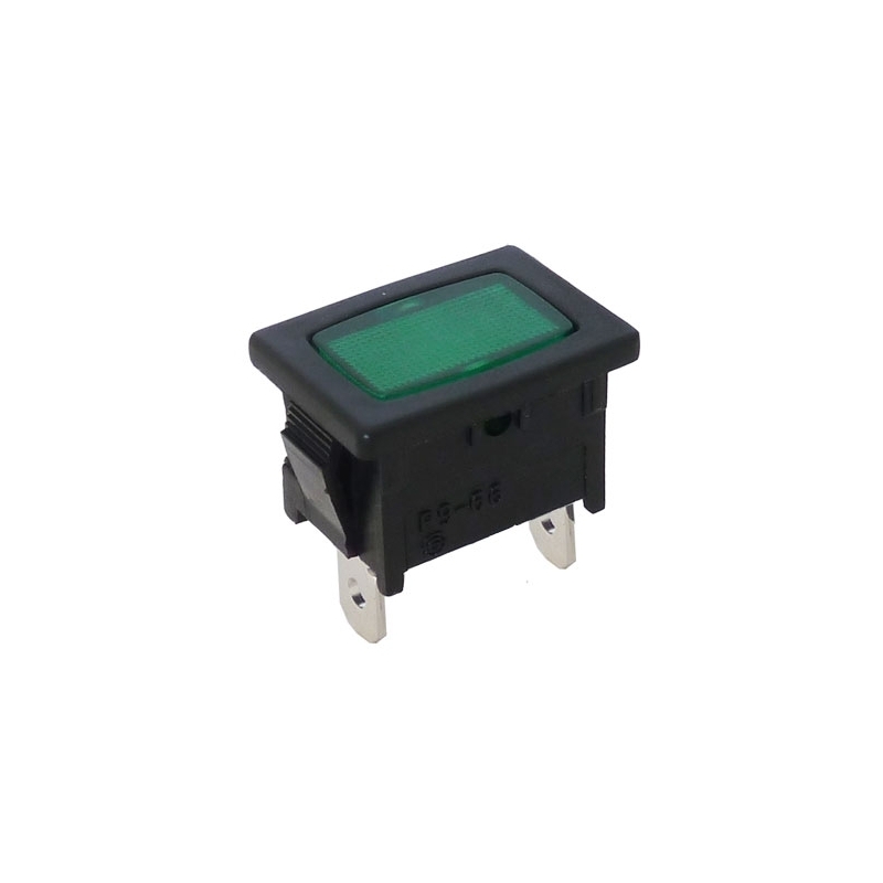 Indicator Light / Panel Mount / Green / Neon Bulb / 250Vac / 13mm x 19mm / 4.8mm QC Terminal / RoHS / R9-66G.