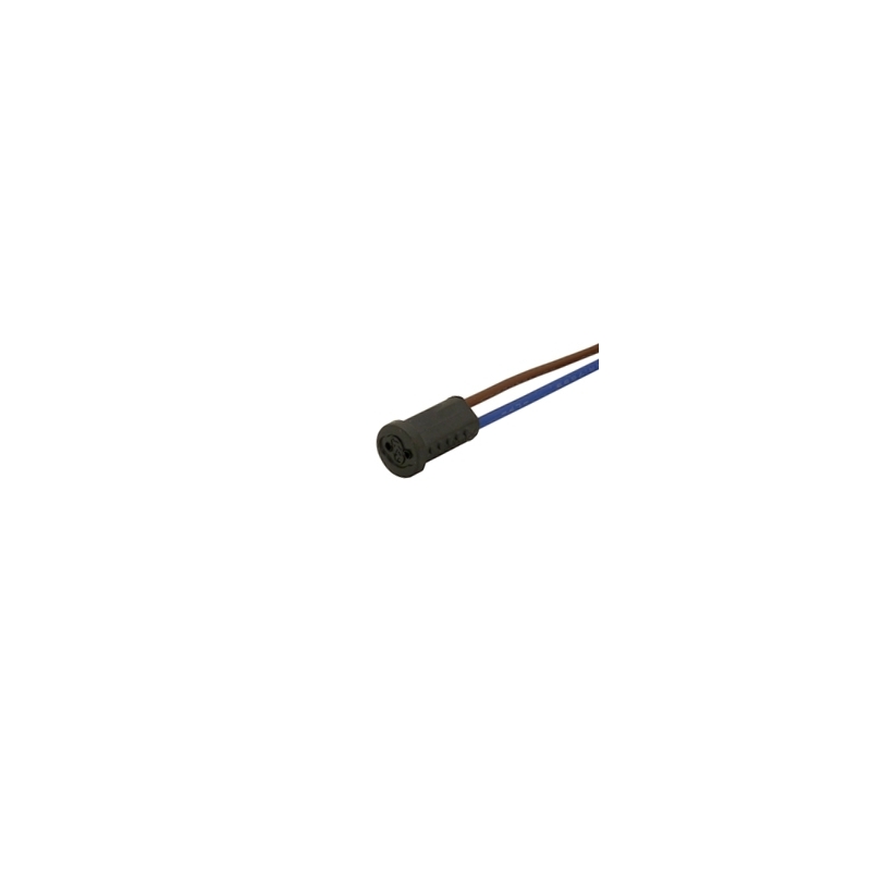 This low voltage G4 lamp holder has a plastic base and is supplied with 150mm Teflon insulated high temperature wires, stripped to 8mm and suitable for up to 180 degrees celcius. Rated at 5A 25V and suitable for up to 100W, ideal for use with low voltage halogen and dichroic lamps. Snap in fixing to 7.5mm - 7.8mm panel cut out. RoHS compliant and carrying UL and VDE approvals.