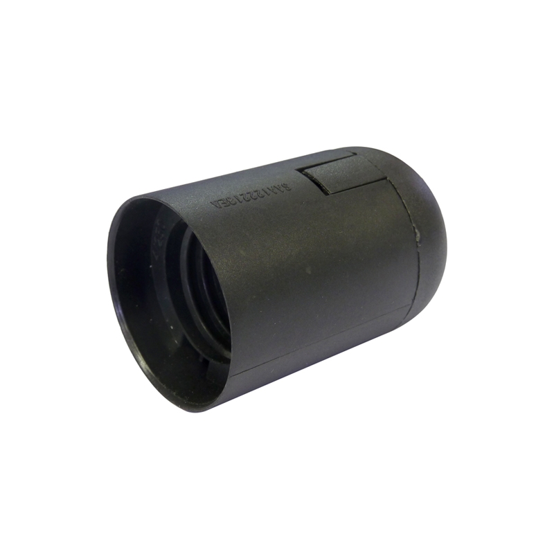 High quality PET plastic plain body E27 lamp holder, moulded in black. This is also known as an Edison Screw or ES lampholder.