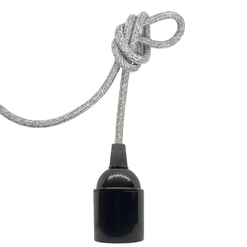 Douille E27 avec Câble Textile Gris / Corps de Bakélite / Noire Brillant /...