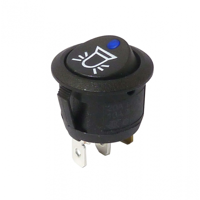 High quality illuminated round rocker switch from leading manufacturer SCI to fit the standard 20mm panel cut out. On Off, single pole single throw (SPST) function. This round rocker switch has a black body and black rocker with a blue illuminated point of light lens with a warning symbol on the rocker. This is a low voltage rocker switch and operates at 12-28 volts. Carries ENEC (European) and UL (American) approvals at mains voltages and complies with RoHS.