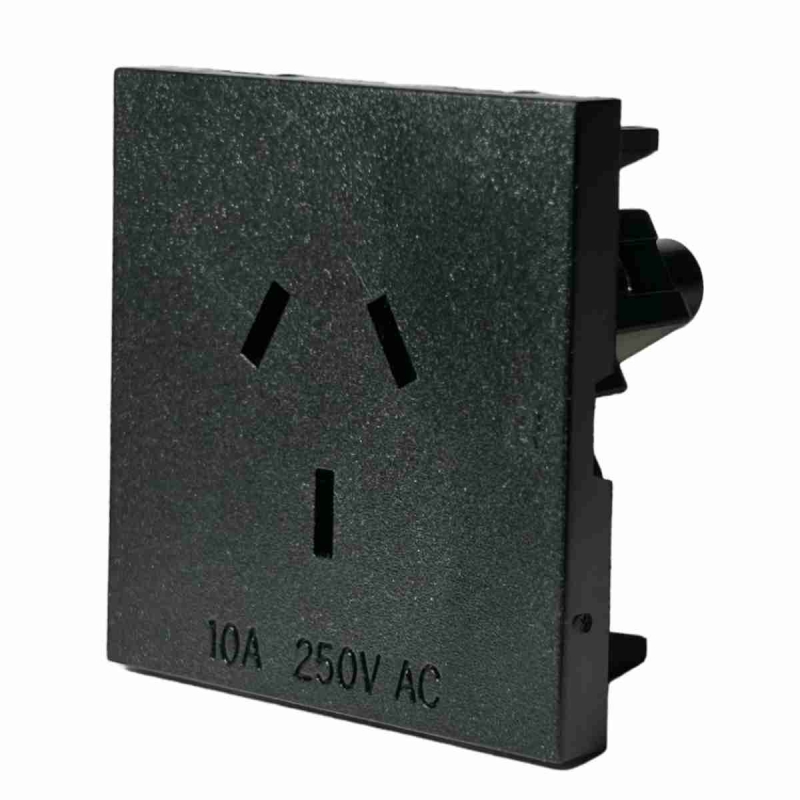 Prise de Courant Australian / Noir / Snap-in / 10A 250V / 50 x 50mm / NSW AS/NZS 3112:2004 / RoHS / RA-02(00)-B.